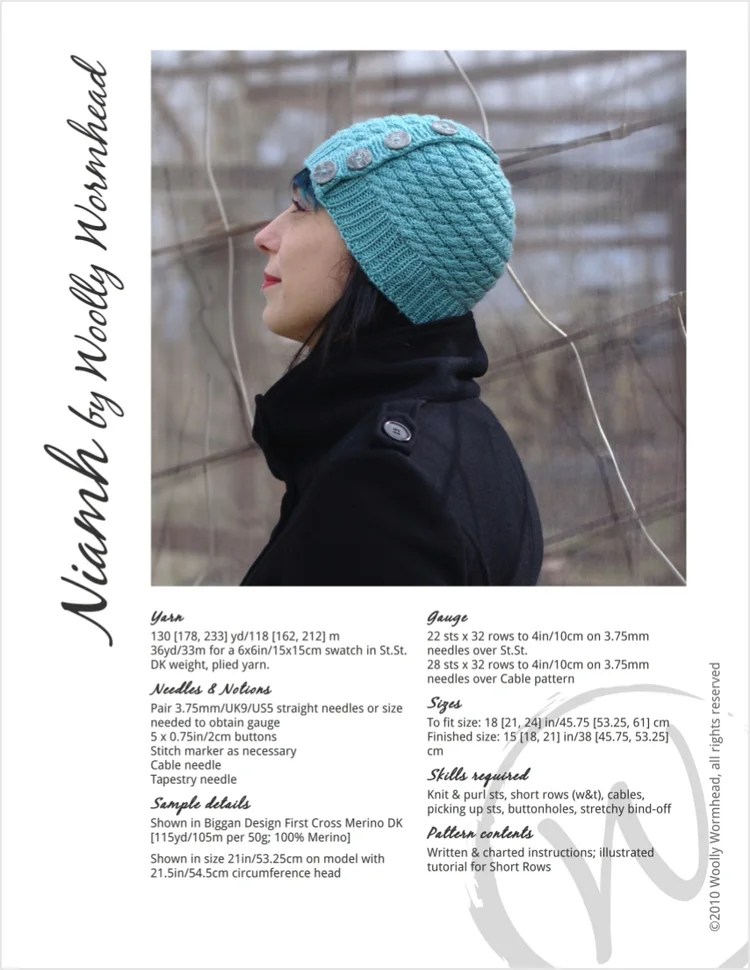 Niamh Sideways Cable Hat Knitting Pattern Woolly Wormhead